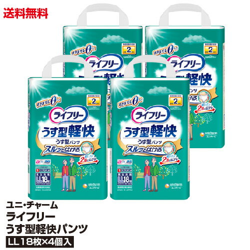 送料無料 大人用おむつ パンツ型おむつ ユニ・チャーム ライフリ− うす型軽快 パンツ LLサイズ 18枚×4個入_4903111913459_5