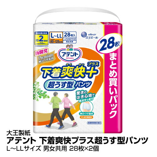 大人用おむつ パンツ型おむつ 大王製紙 アテント 下着爽快プラス超うす型パンツ L〜LLサイズ 男女共用 28枚×2個_4902011776003_5
