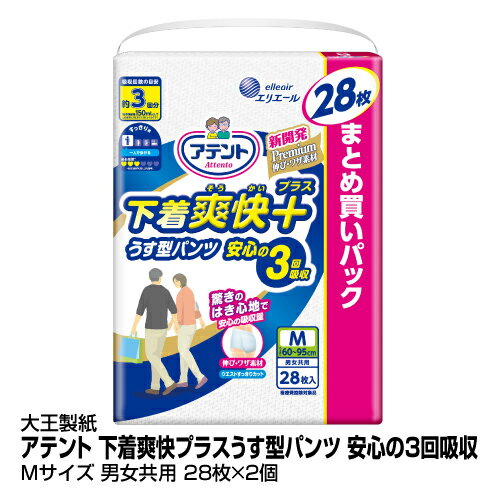 大人用おむつ パンツ型おむつ 大王製紙 アテント 下着爽快プラスうす型パンツ 安心の3回吸収 Mサイズ 男女共用 28枚×2個_4902011778090_5