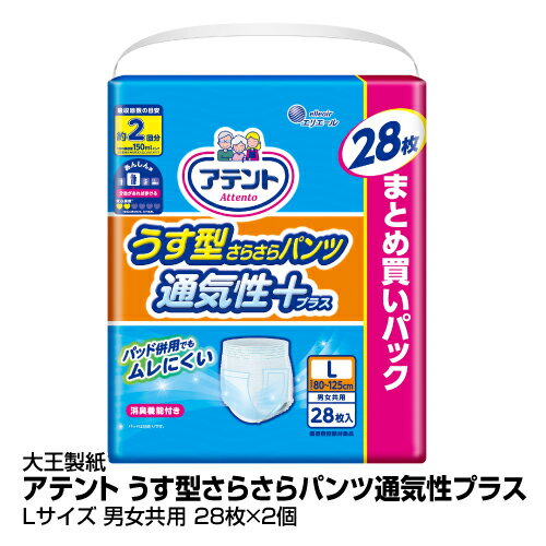 大人用おむつ パンツ型おむつ 大王製紙 アテント うす型さらさらパンツ通気性プラス Lサイズ 男女共用 28枚×2個_4902011770278_5