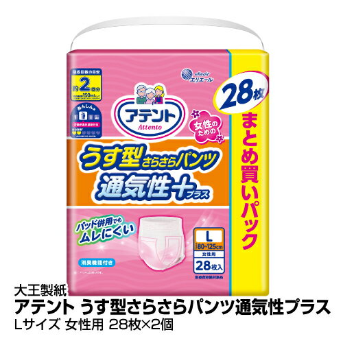 大人用おむつ パンツ型おむつ 大王製紙 アテント うす型さらさらパンツ通気性プラス Lサイズ 女性用 28枚×2個_4902011770292_5