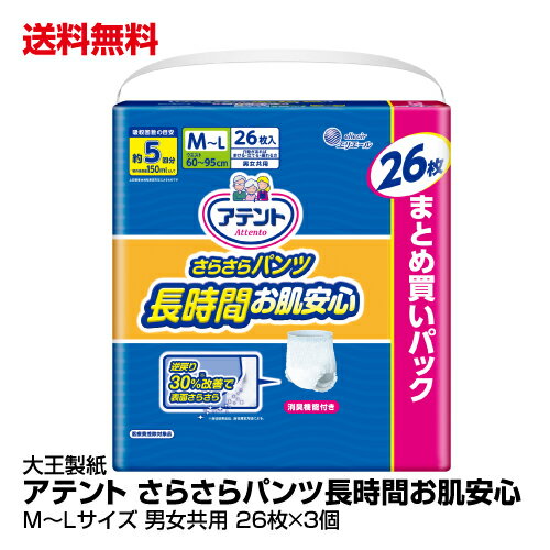 送料無料 大人用おむつ パンツ型おむつ 大王製紙 アテント さらさらパンツ長時間お肌安心 M〜Lサイズ 男女共用 26枚×3個_4902011770766_5