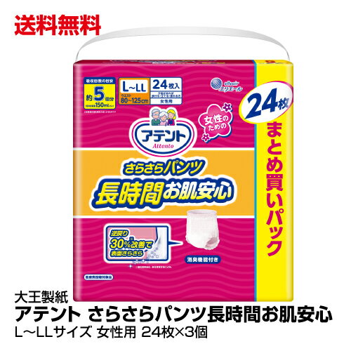 送料無料 大人用おむつ パンツ型おむつ 大王製紙 アテント さらさらパンツ長時間お肌安心 L〜LLサイズ 女性用 24枚×3個_4902011770797_5