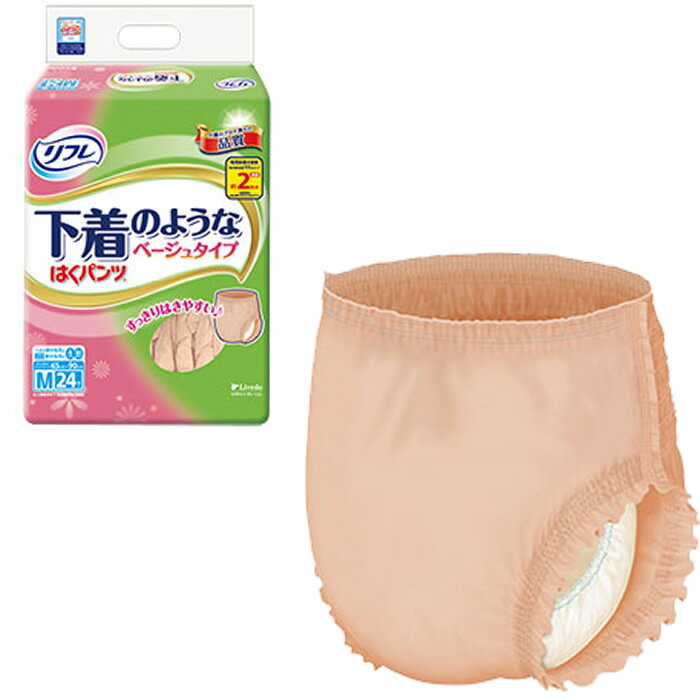 リフレ はくパンツ下着のようなベージュタイプ 17369 M 24枚 T1026 大人用紙おむつ 介護用 オムツ 薄型 下着型 パンツ型オムツ 目立たない 肌色