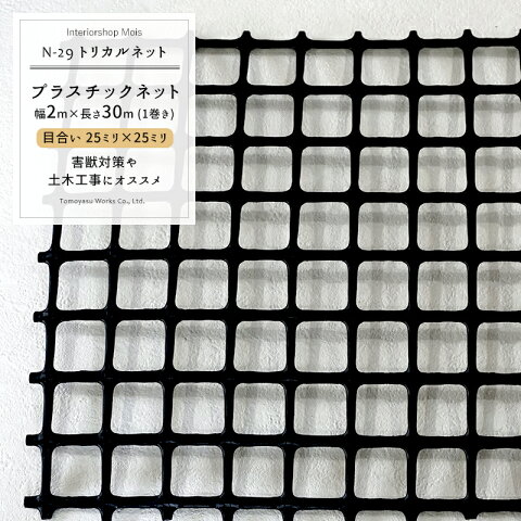 [5日限定!8%OFFクーポン有] トリカルネット N-29/目合い 25×25mm/サイズ 2×30m巻[プラスチックネット 獣害対策 動物よけ イノシシ対策 被害 農作物 保護 防護 侵入防止 ネット 網黒 ブラック]《5日後出荷》