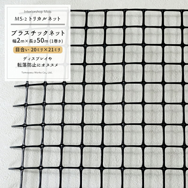 [5日限定!8%OFFクーポン有] トリカルネット MS-3/目合い 20×21mm/サイズ 2×50m巻[プラスチックネット 落下防止 棚 ラック 階段 柵 フェンス 安全 カバー ディスプレイ イルミネーションネット 鳥よけネット ネット 網 黒 ブラック]《5日後出荷》