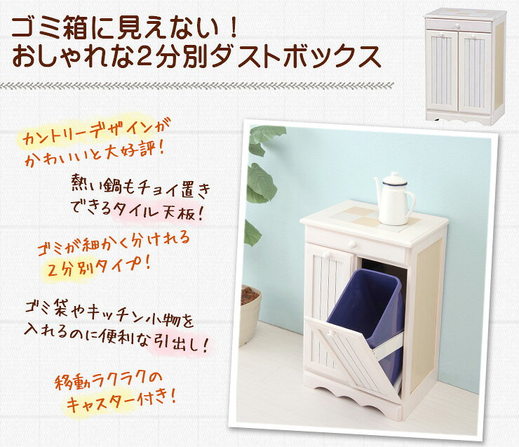 ひとつひとつが独立しているからゴミ出しも楽ラク! ペール2個付き(ペール容量:約15リットル) ゴミ箱に見えないカントリー調のオシャレなデザインも人気の秘密です! ■サイズ(約)cm 幅47×奥行34×高さ70 [引き出し内寸]幅40×奥行27×深さ6 ■ペール容量 約15リットル ペール内寸(約):幅18×奥行26.5×高さ36.5cm ■仕様 本体:天然木パイン(ラッカー塗装)・プリント紙化粧繊維版 天板:タイル、ペール:ポリプロピレン ■カラー ナチュラル・ホワイト ■備考 完成品(取っ手のみお客様取り付け)、 隠しキャスター付 ■生産国 中国 メーカー品番:MUD-3556 メーカー希望小売価格はメーカーカタログに基づいて掲載しています商品スペック サイズ/重量 (約)幅47×奥行34×高さ70cm/[引き出し内寸]幅40×奥行27×深さ6cm (約)10kg ペール容量 約15リットル ペール内寸(約):幅18×奥行26.5×高さ36.5cm 仕様 本体:天然木パイン(ラッカー塗装)・プリント紙化粧繊維版 天板:タイル、ペール:ポリプロピレン 生産国 中国 備考 完成品(取っ手のみお客様取り付け)、 隠しキャスター付 サイズ一覧 こんな「キッチン収納やキッチン用品」も人気です